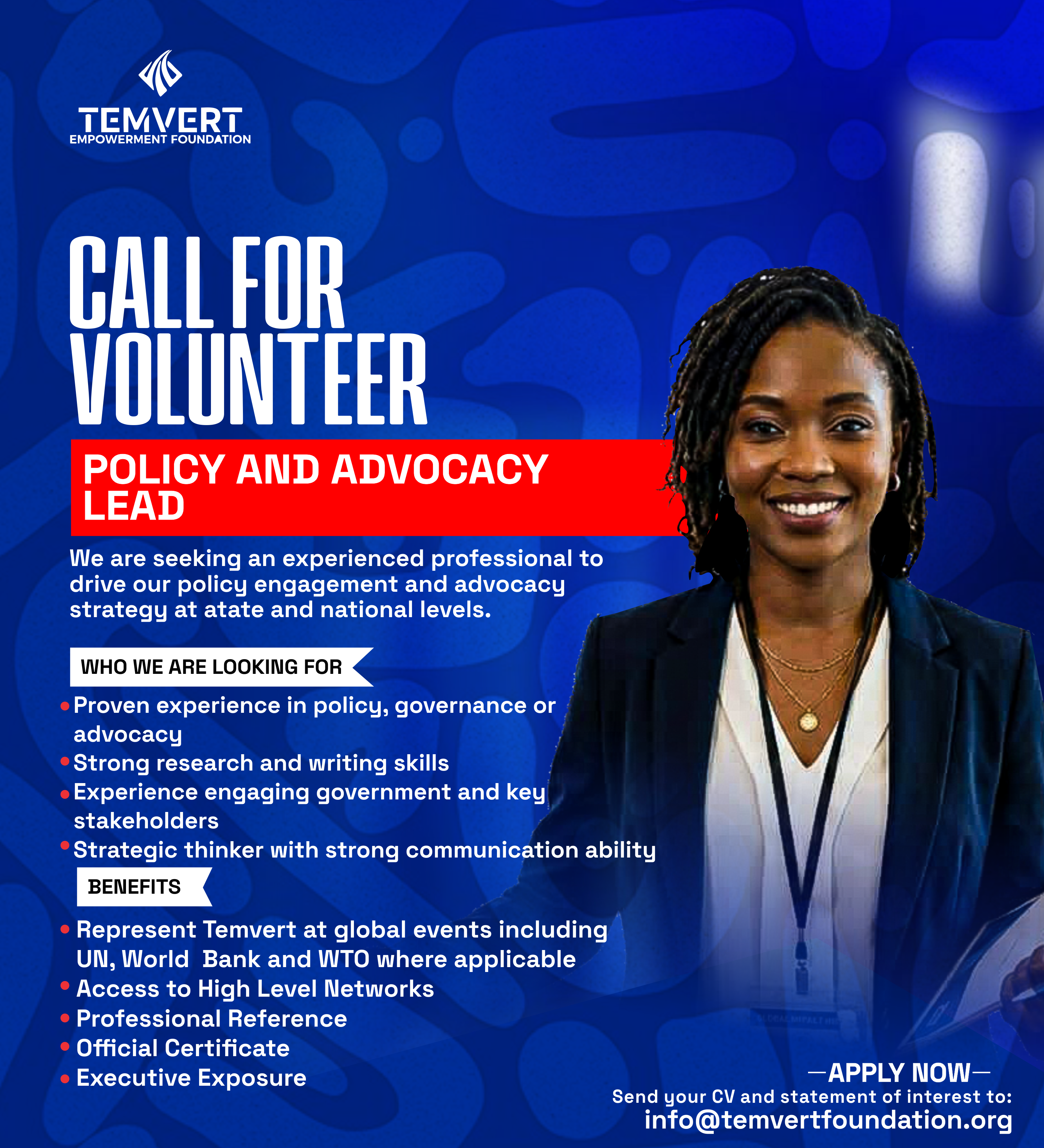 Temvert Empowerment Foundation Opens Applications for Volunteer Policy and Advocacy Lead Temvert Empowerment Foundation is inviting applications for the role of…