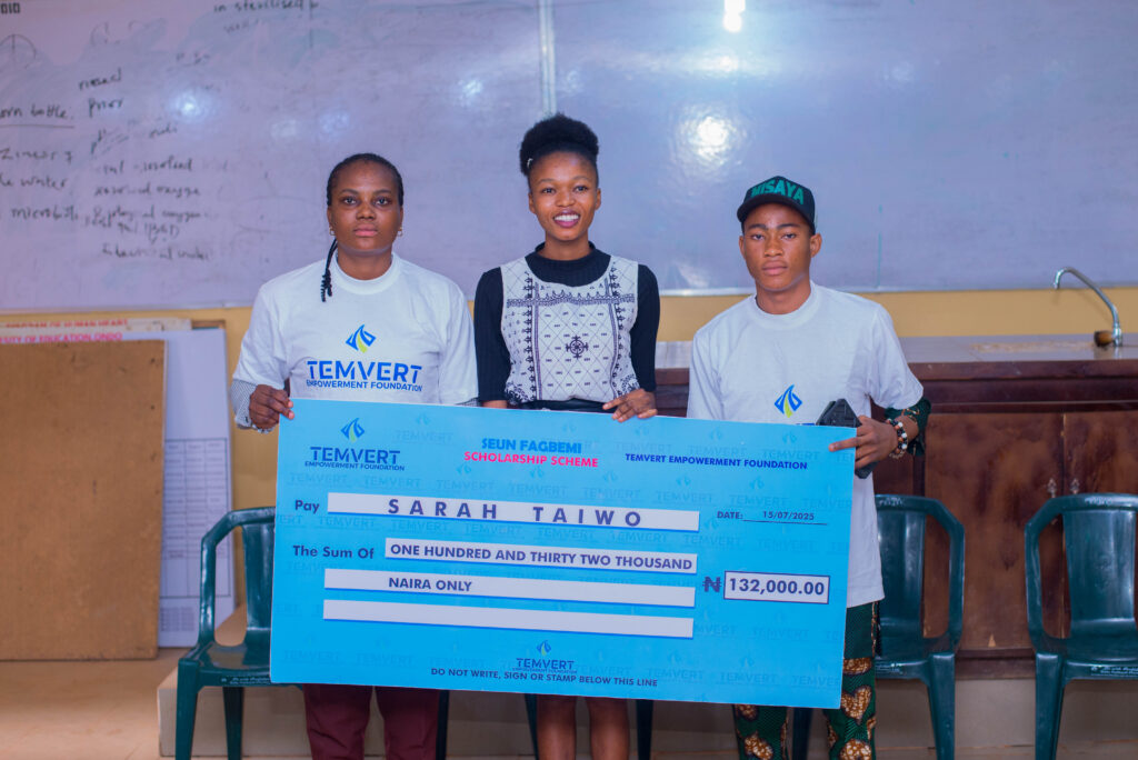 I am happy that we have awarded #132,000 scholarship to Sarah Taiwo who is now the first recipient of this Seun Fagbemi Scholarship Scheme.”